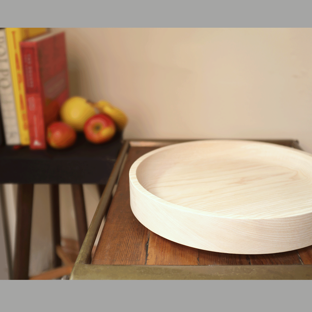 Natural ash shallow salad / fruit bowl made from English timber finished with food safe oil, also available in natural oak or charred ash.